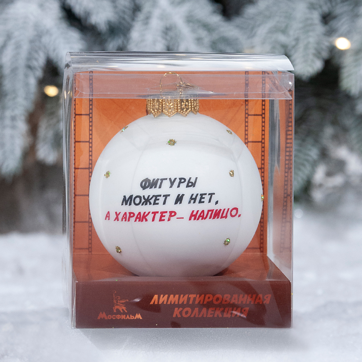 Ёлочная игрушка из стекла с крылатой фразой из легендарного фильма «Девчата», вошедшего в «Золотую коллекцию» МОСФИЛЬМА – уникальный сувенир для поклонников советского кинематографа.