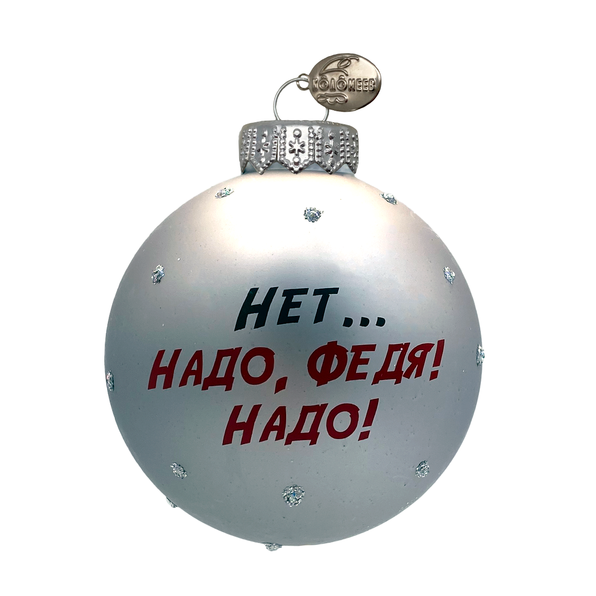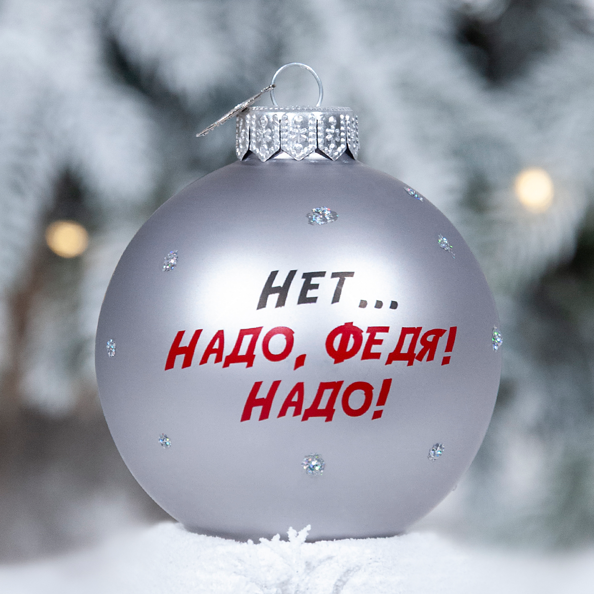 Ёлочная игрушка из стекла с крылатой фразой из легендарного фильма «Операция «Ы» и другие приключения Шурика», вошедшего в «Золотую коллекцию» МОСФИЛЬМА – уникальный сувенир для поклонников советского кинематографа.