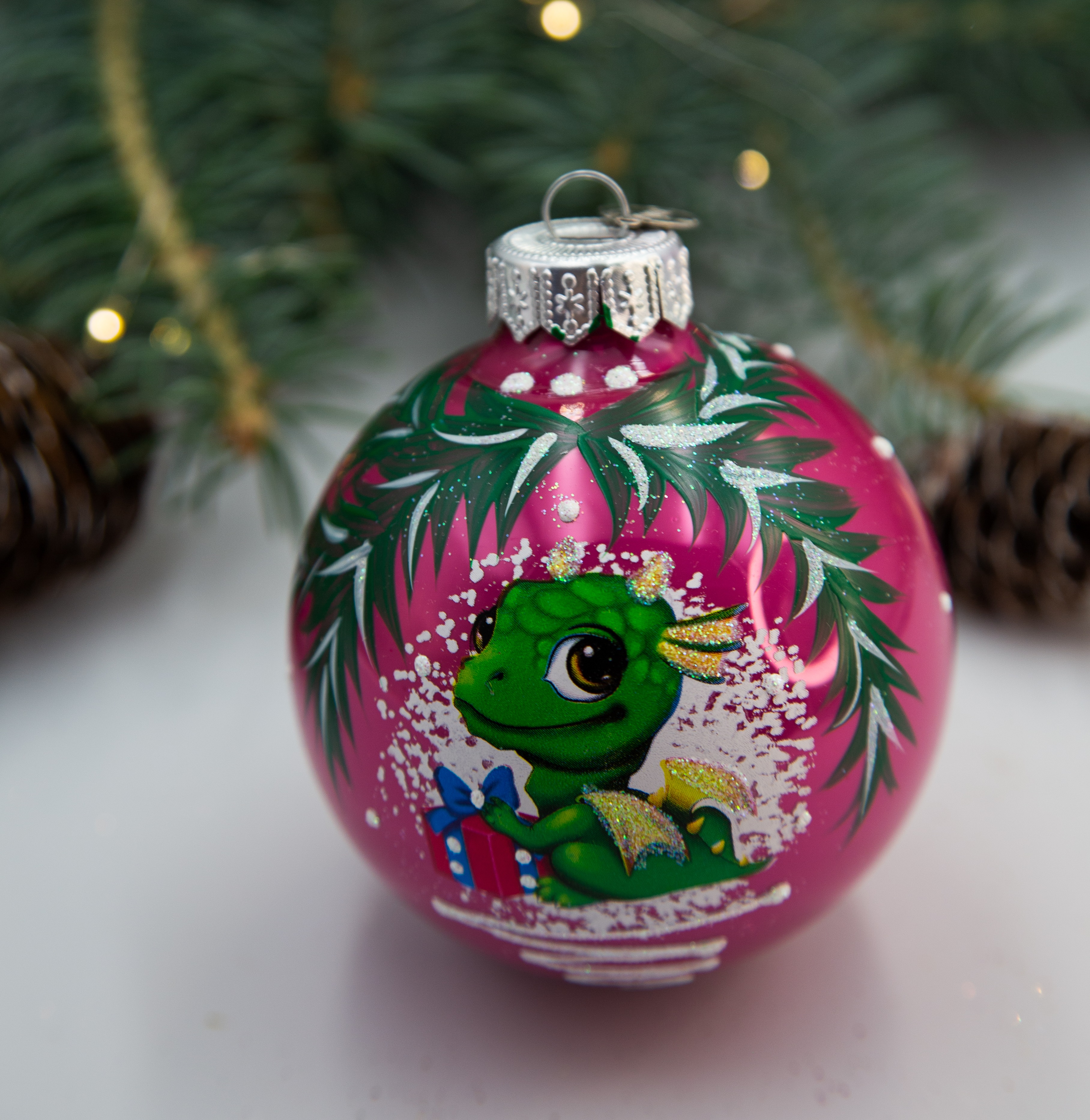 <virtues>Ручная роспись выглядит шикарно, надежное крепление</virtues> <comment>Отличная покупка, прямо украшение ёлки в этом году. Всем советую.</comment>